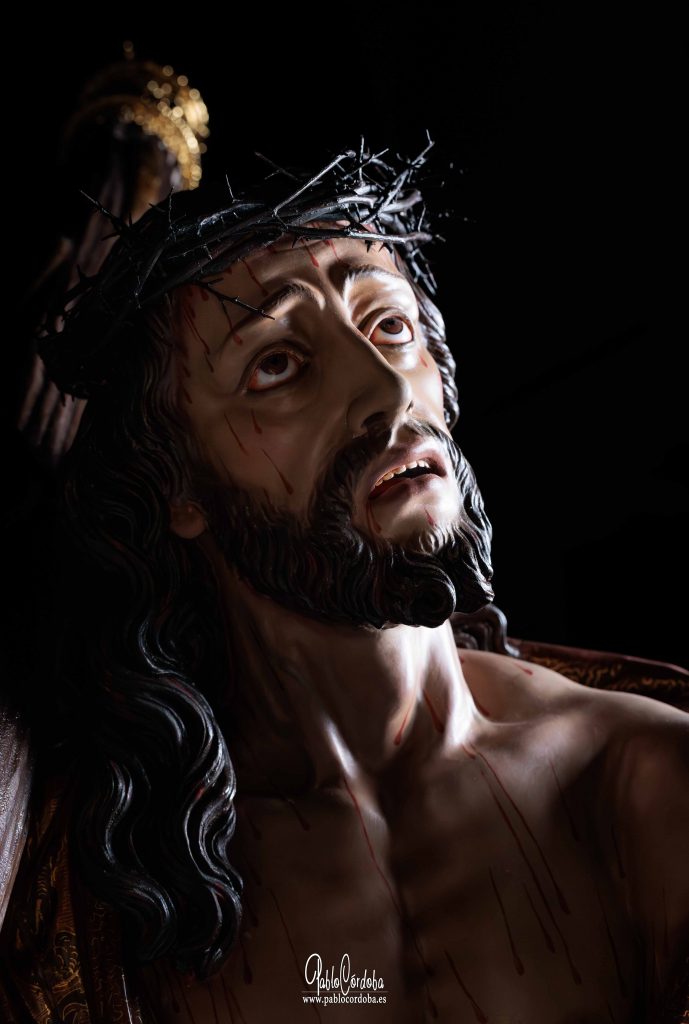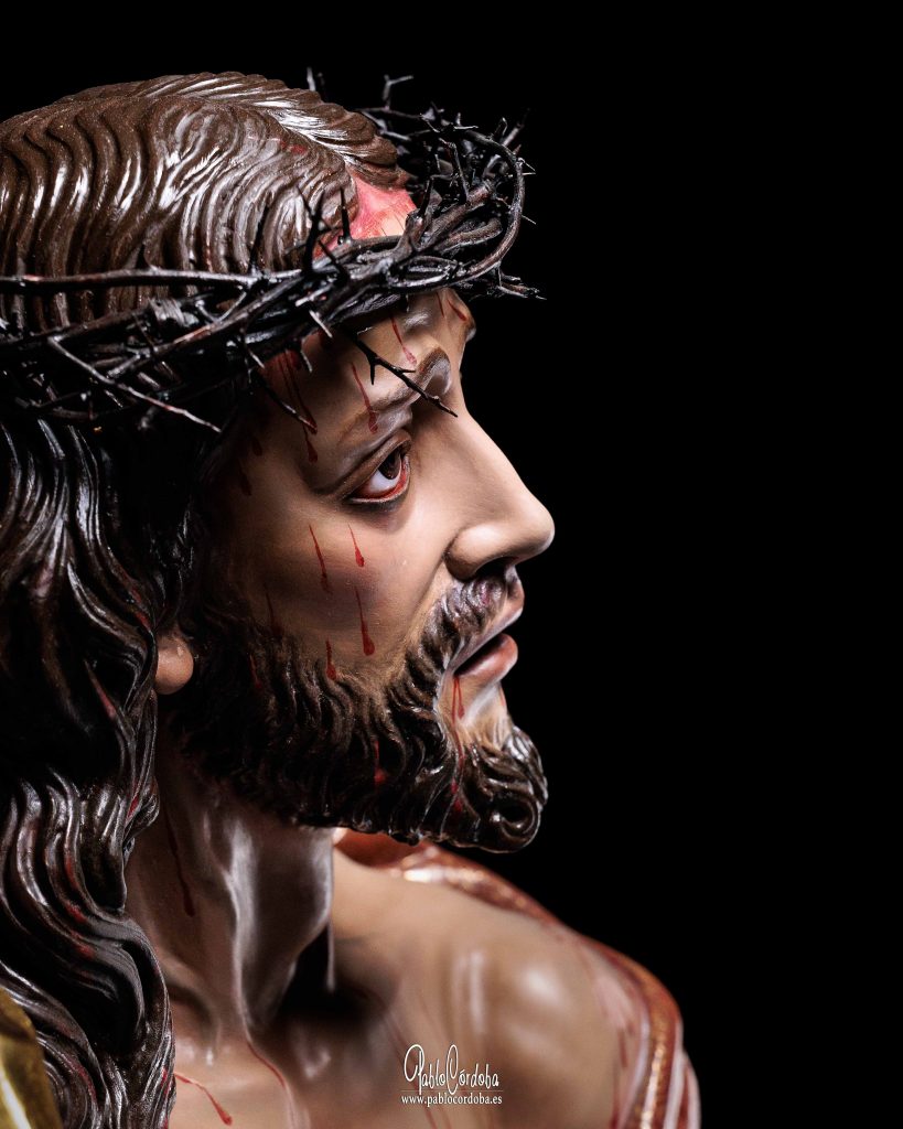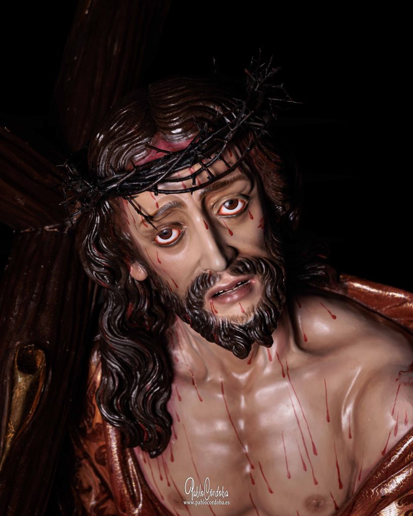 Galería fotográfica del Cristo del Trabajo tras la finalización de su proceso de restauración, donde se pueden apreciar los detalles de la intervención realizada en la imagen.